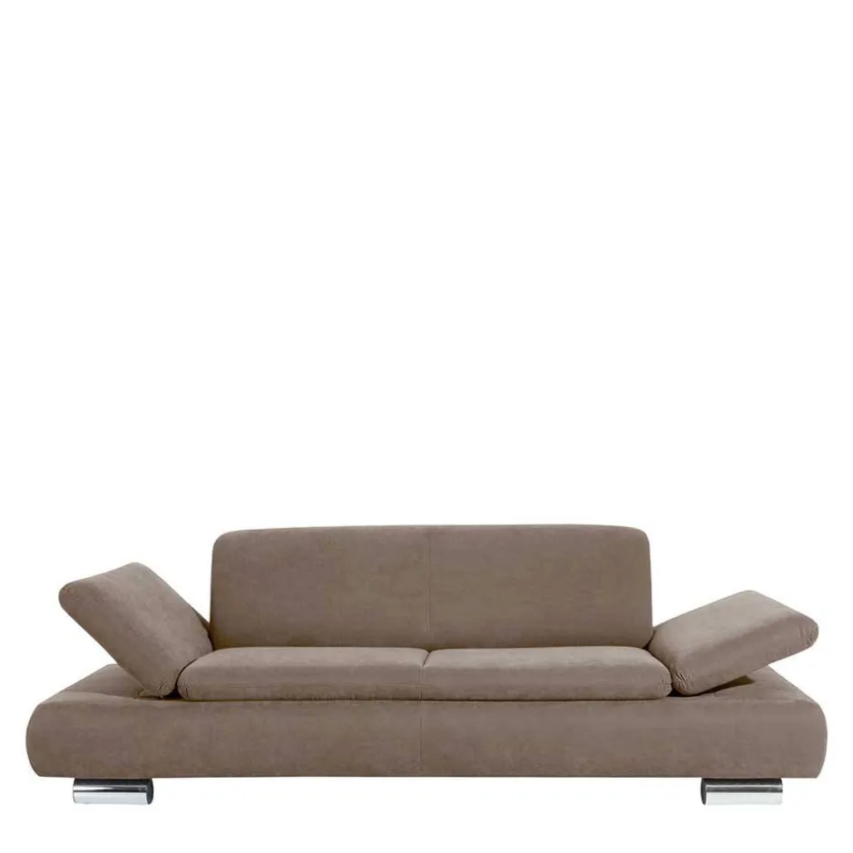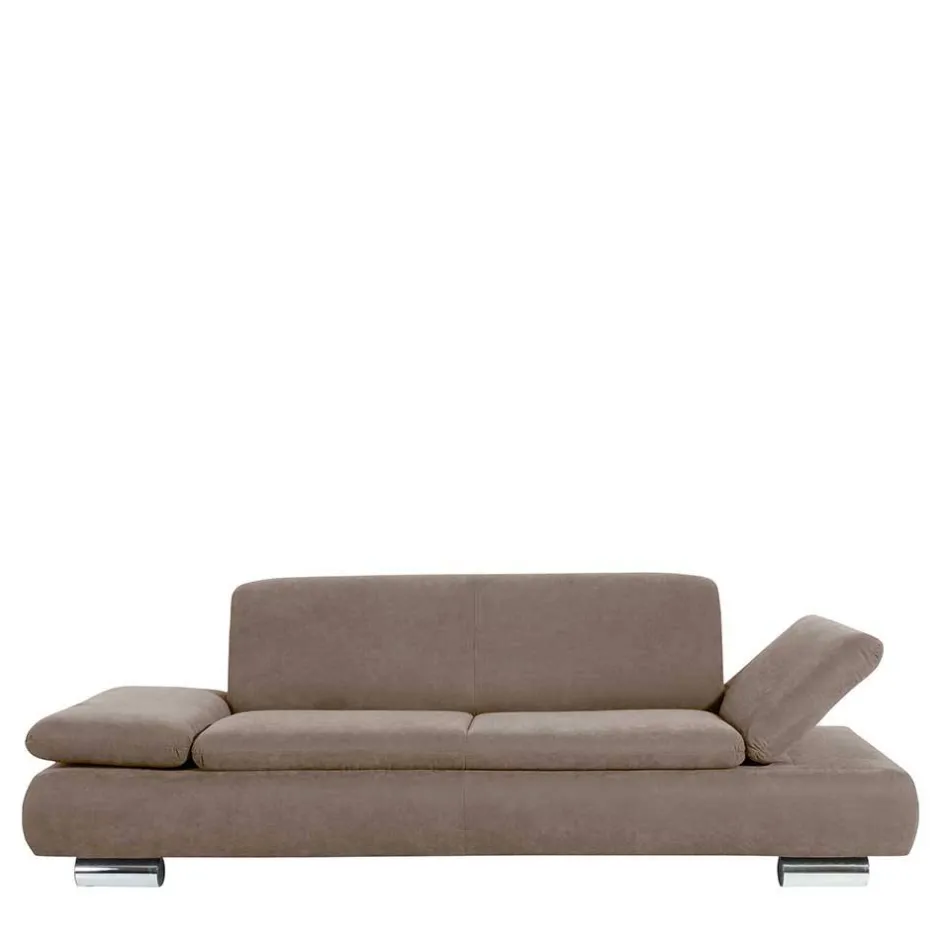 - Schlichtes Sofa in Beigegrau und Chromfarben