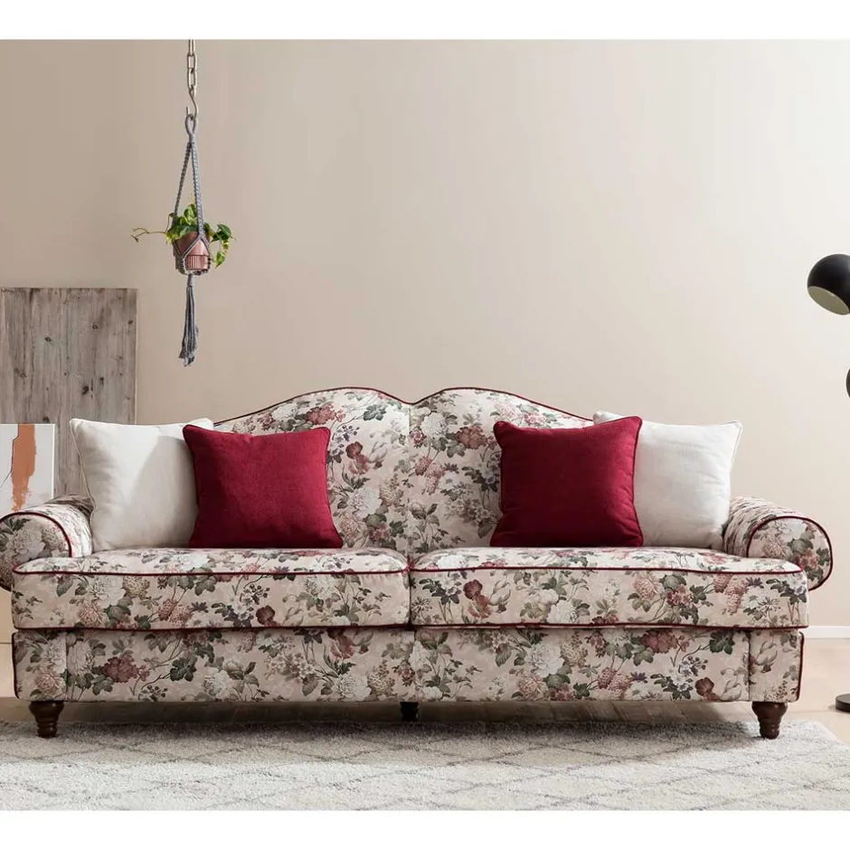 - Inklusive vier Zierkissen von je 42×42 cm in Rot und Beige, Microfaserbezug aus 100 % Polyester