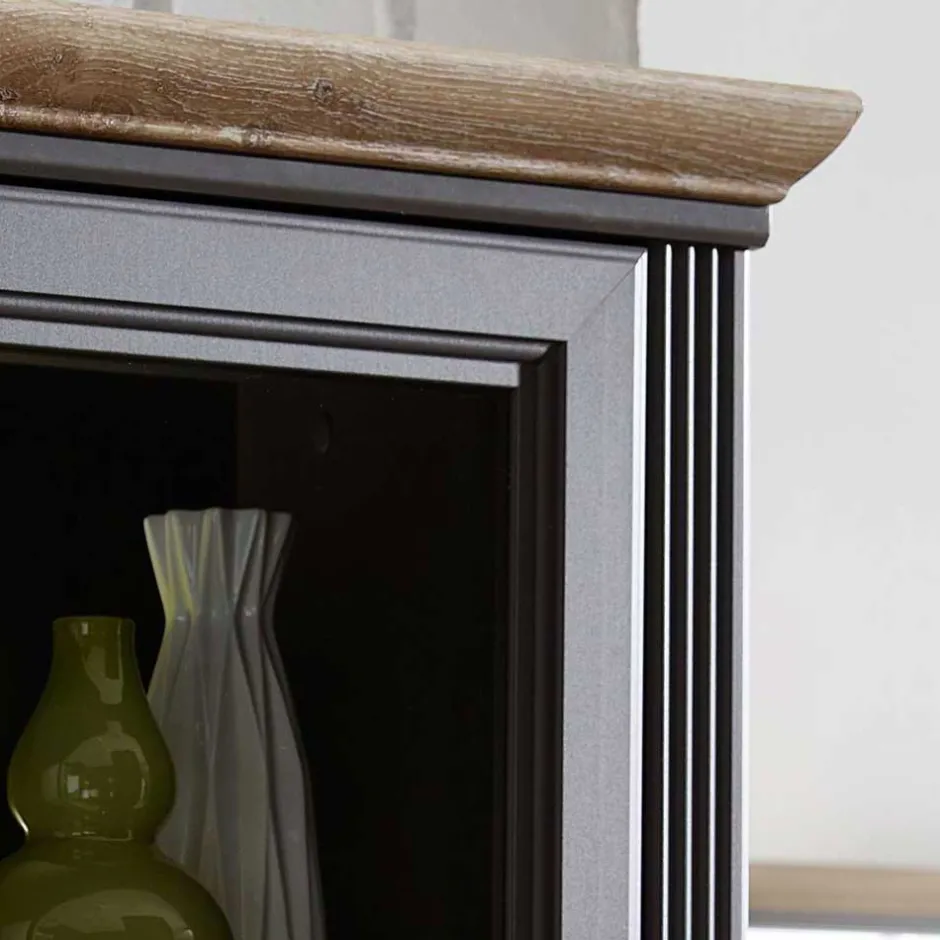 - Wunderbarer Buffetschrank in Dunkelgrau und Eichefarben