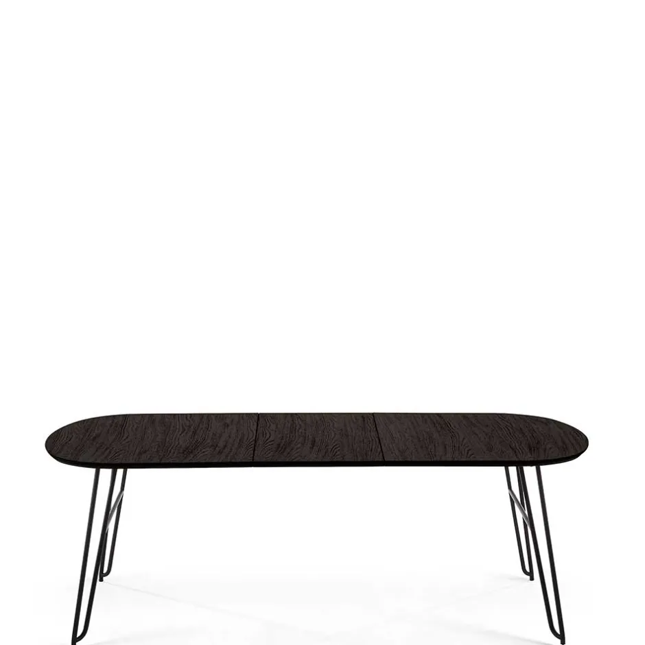 - 001: Breite: 220 / Tiefe: 90 / verlängerbar um je 40 cm, von 140 bis auf 220 cm / mit Kulissenauszug mit zwei Einlegeplatten / für sechs Personen