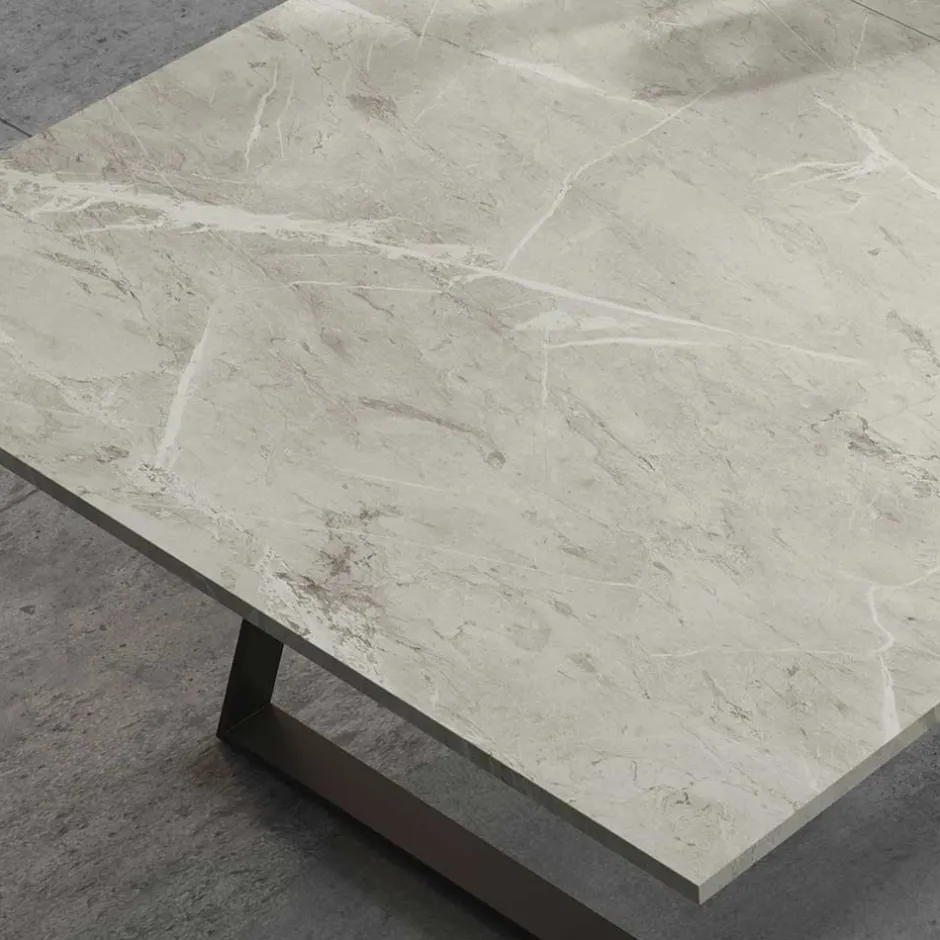 - Holzwerkstoffoberfläche melaminbeschichtet in Marmoroptik, Metall lackiert