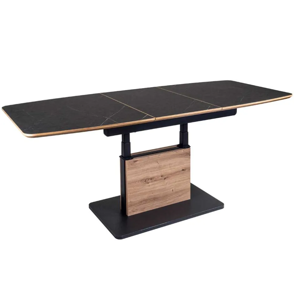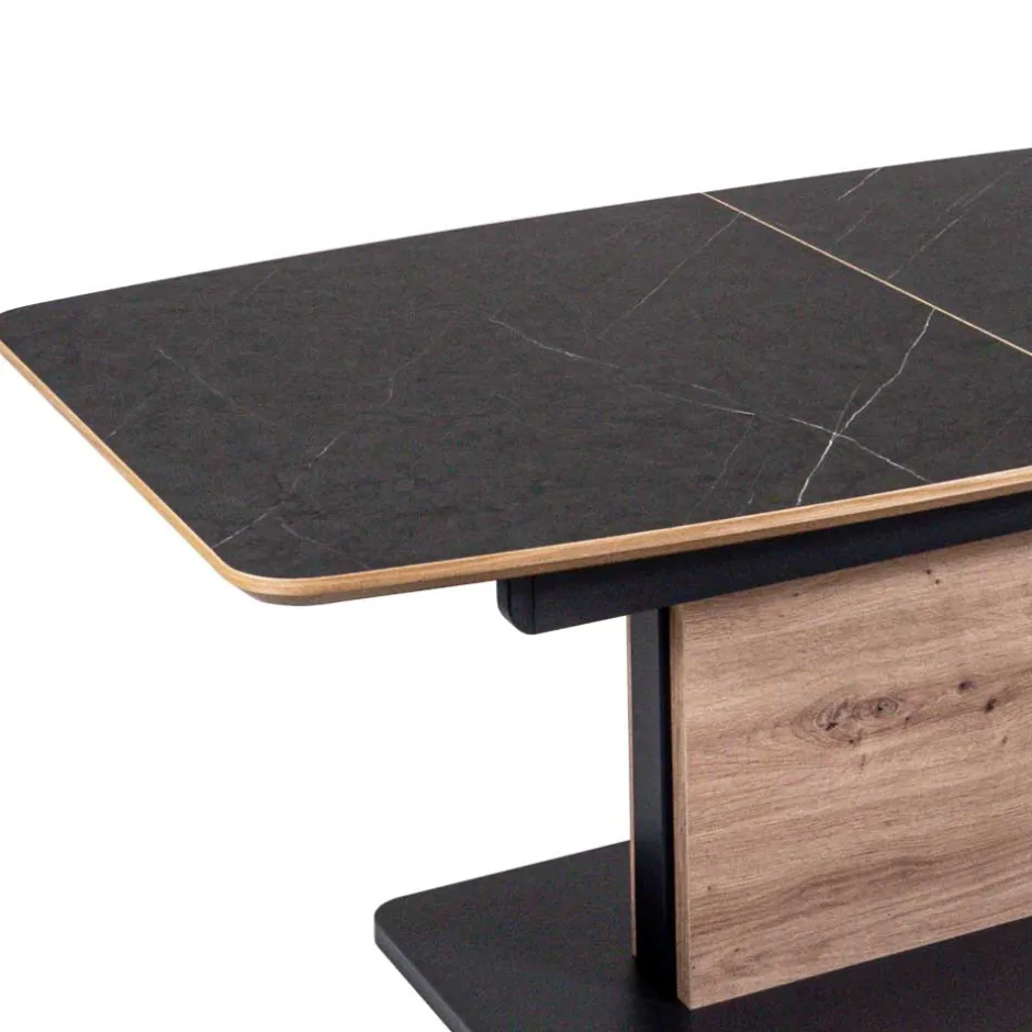 - Modern und elegant präsentiert sich dieser Tisch in den Farben Schwarzgrau und Wildeichefarben