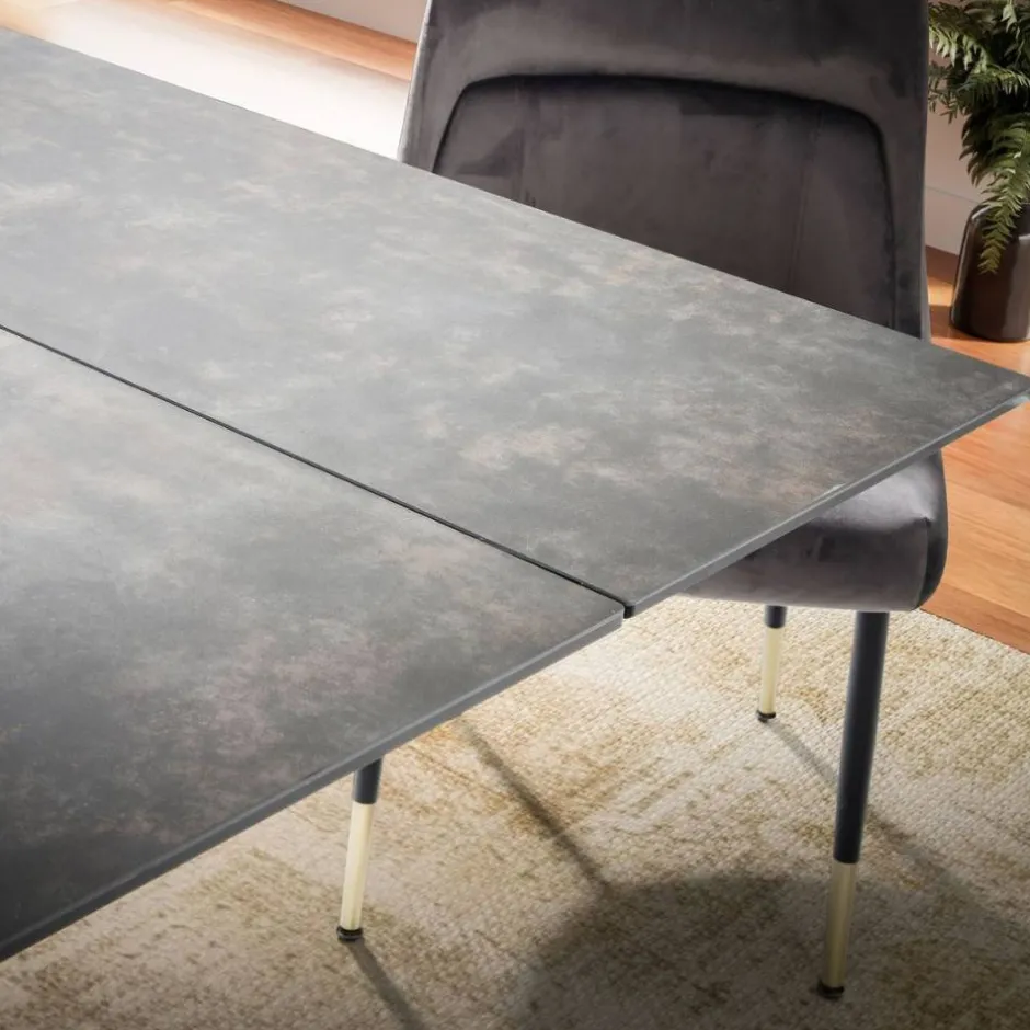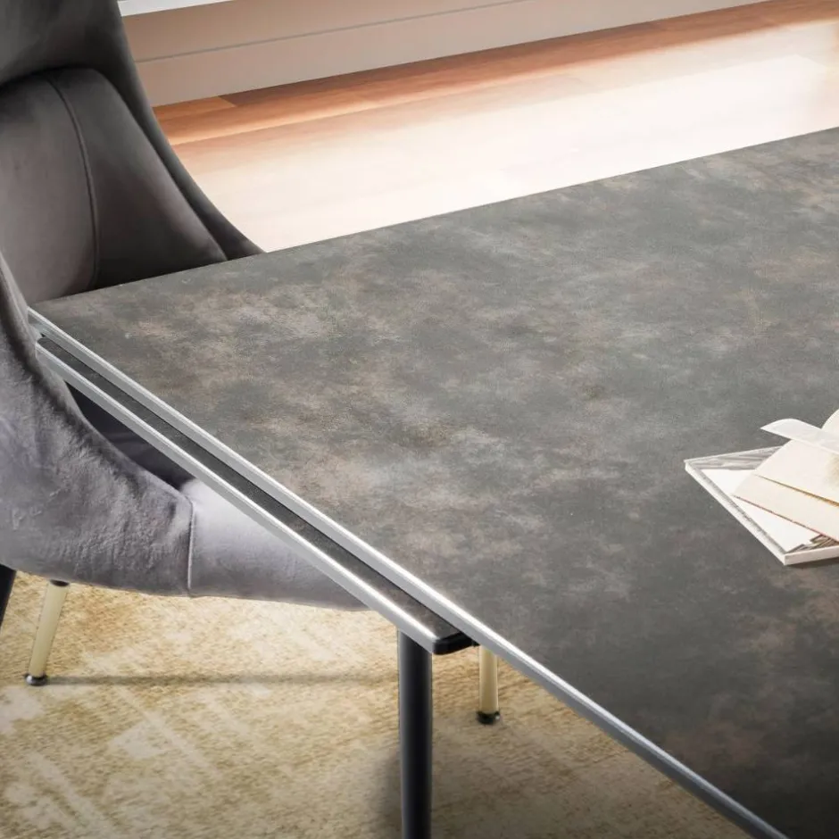 - Hochwertige Keramik Tischplatte in Steinoptik auf einer Glasplatten Basis