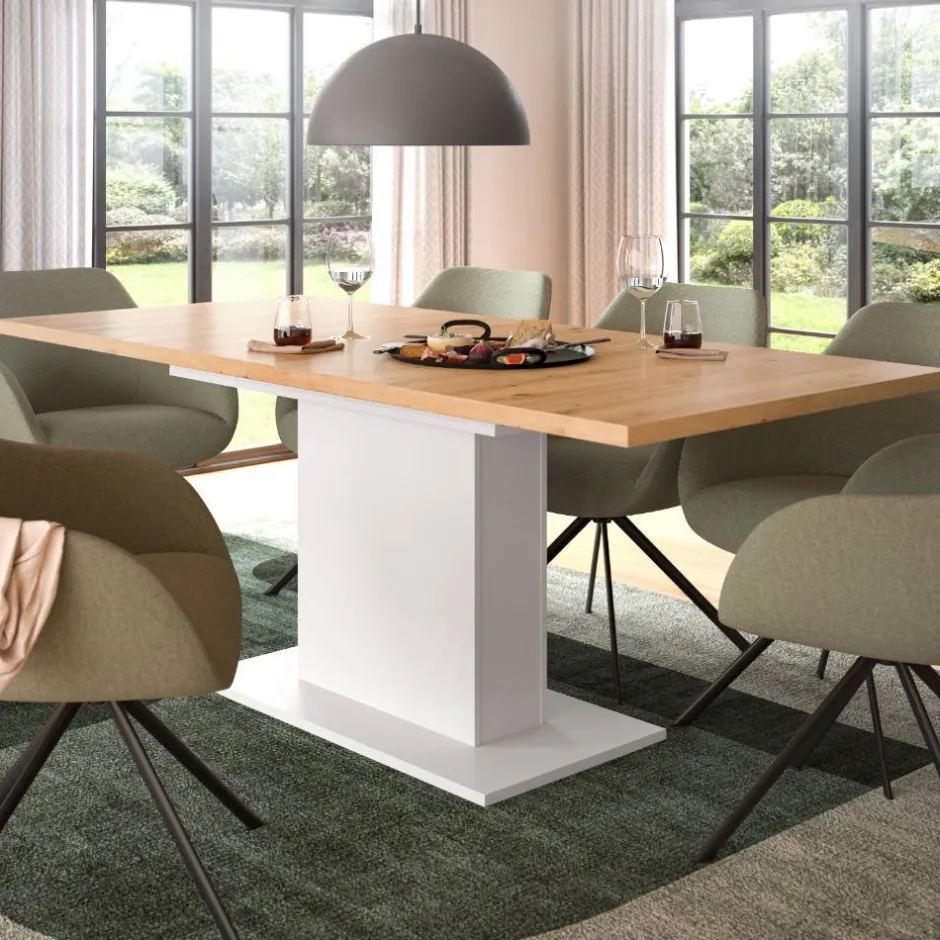 - Zeitloser Küchentisch in Weiß und Wildeichefarben