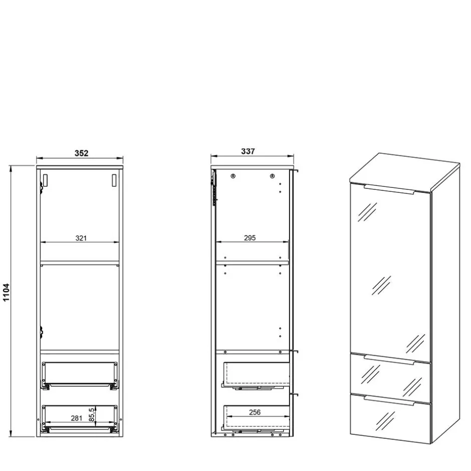 - 36 cm Breit, 111 cm Hoch, 34 cm Tief
