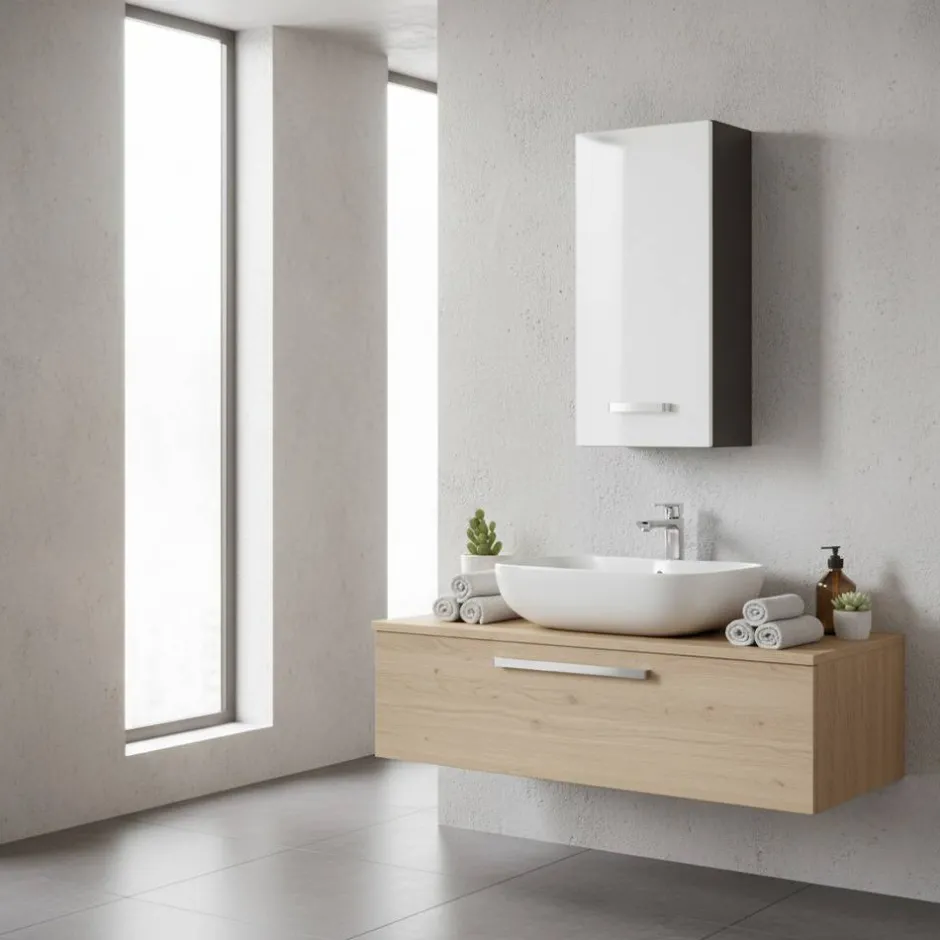 - Moderner Bad Hängeschrank in Weiß und Anthrazit