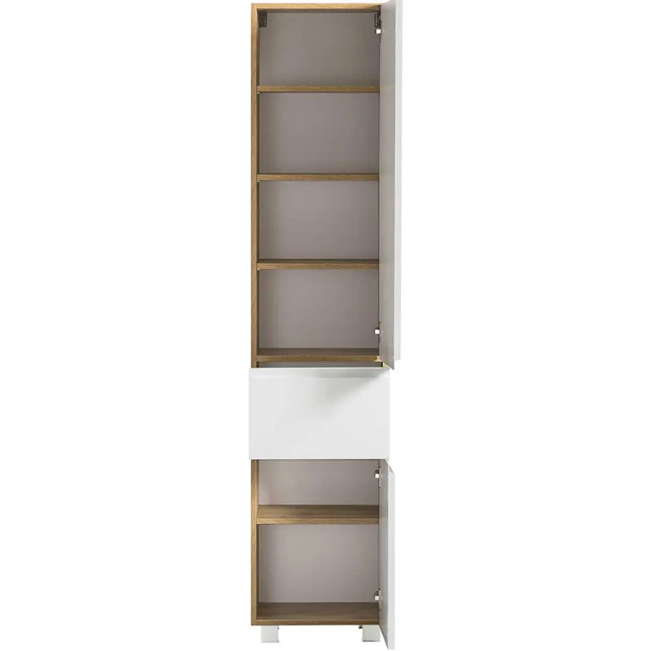 - Geschmackvoller Badhochschrank in Weiß und Wildeichefarben