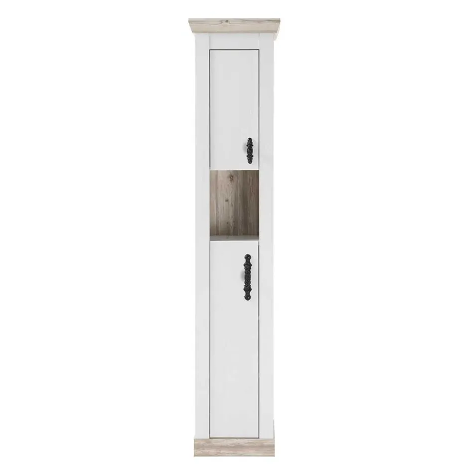 - Schicker Bad Hochschrank in Weiß und Pinienfarben