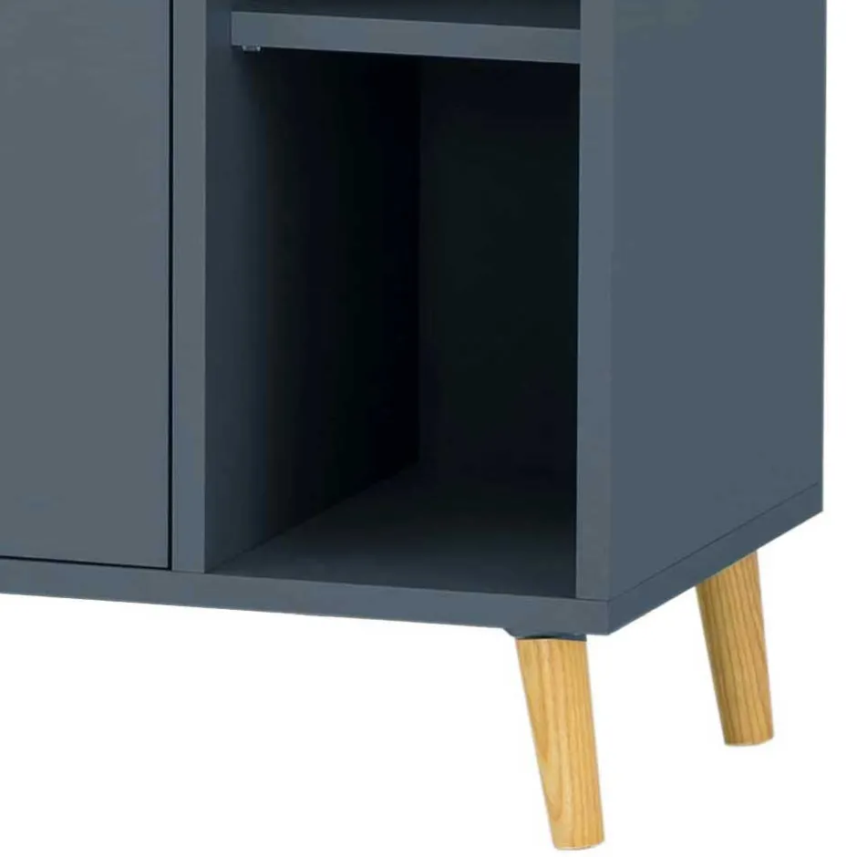 - Smartes Bad Highboard in Petrol und Eichefarben