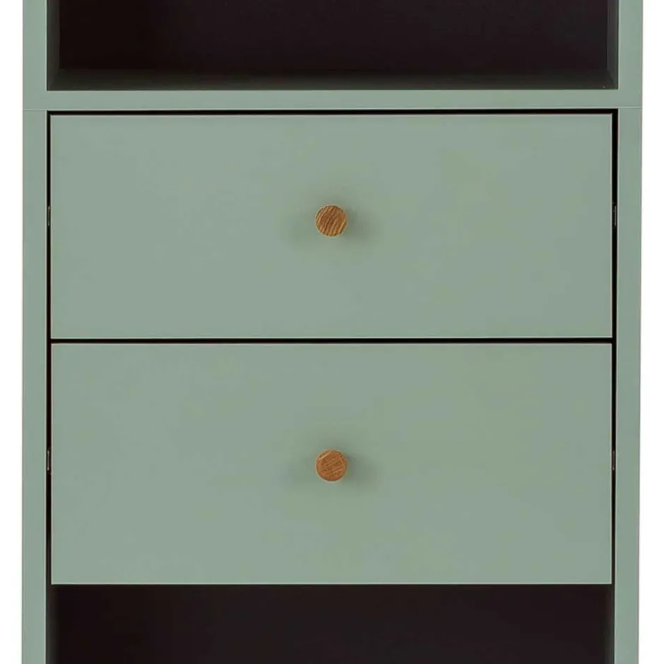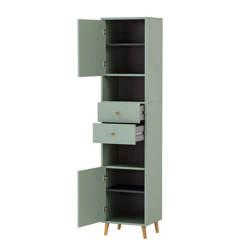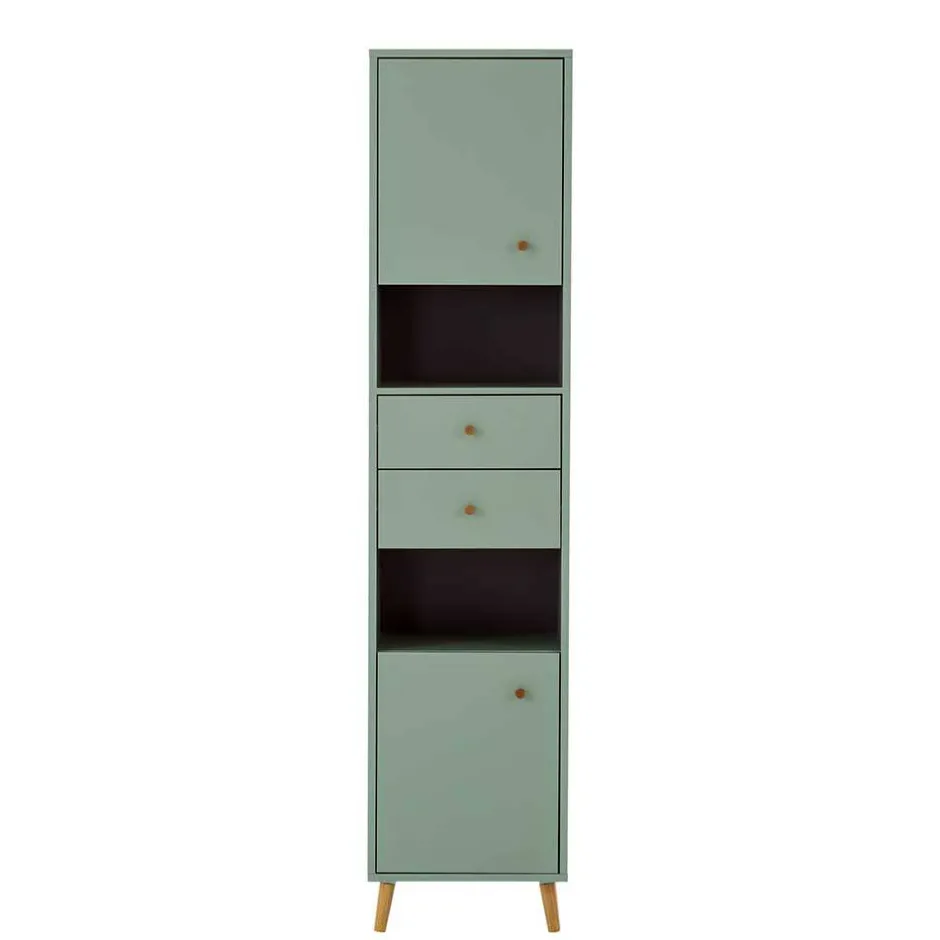 - Junger Bad Hochschrank in Graugrün und Eichefarben