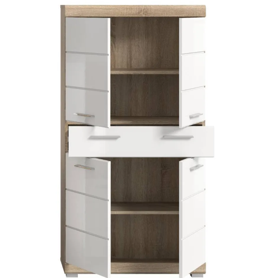 - Klasse Badmidischrank in Weiß und Sonoma Eiche
