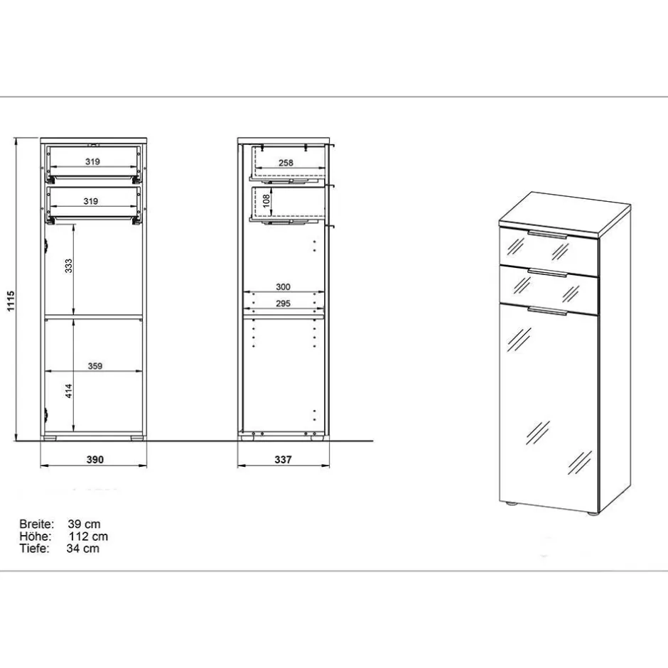 - 39 cm Breit, 112 cm Hoch, 34 cm Tief