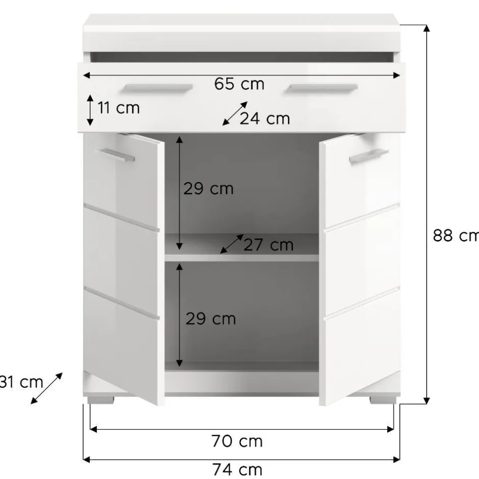 - 74 cm Breit, 88 cm Hoch, 31 cm Tief