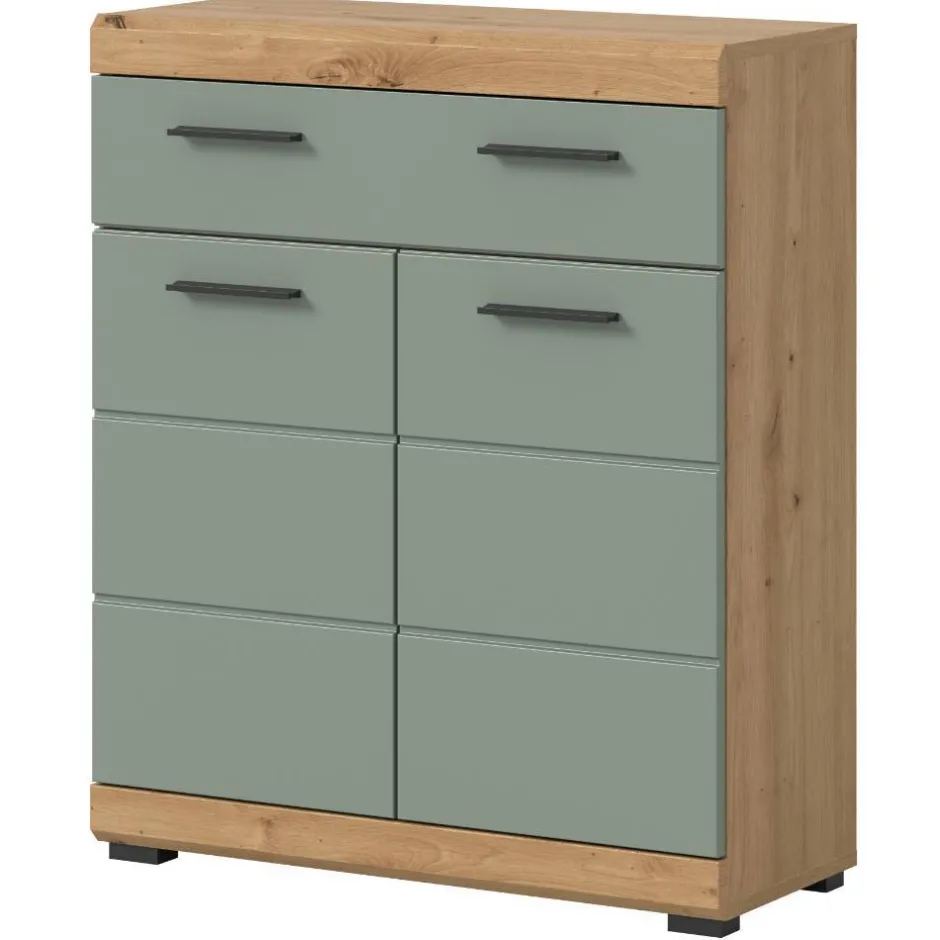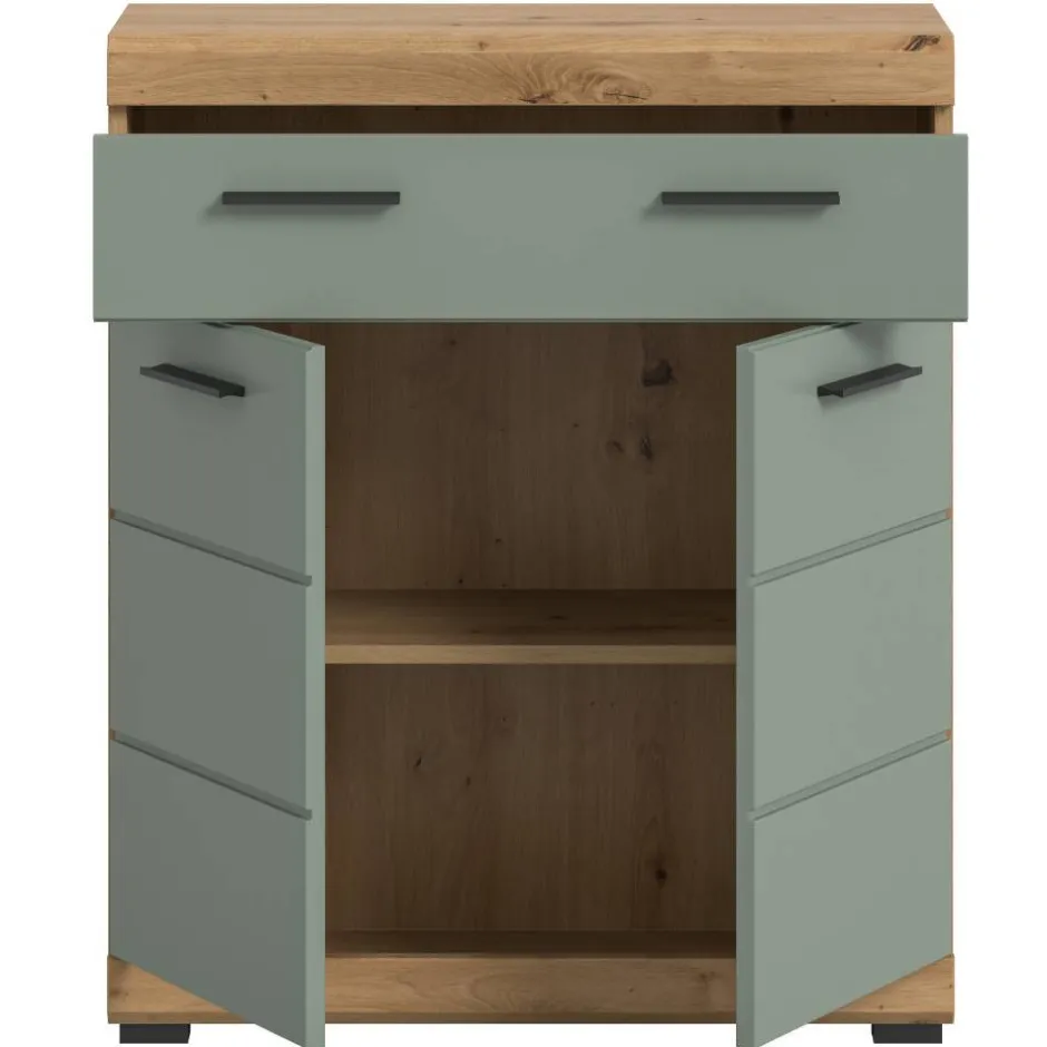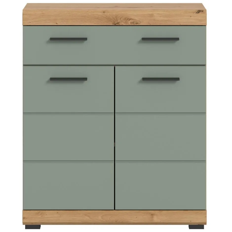 - Attraktiver Badschrank in Salbei und Wildeichefarben