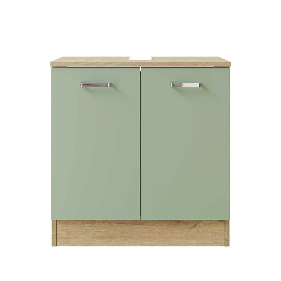 - Trendstarker Waschbeckenunterschrank in Graugrün und Eichefarben