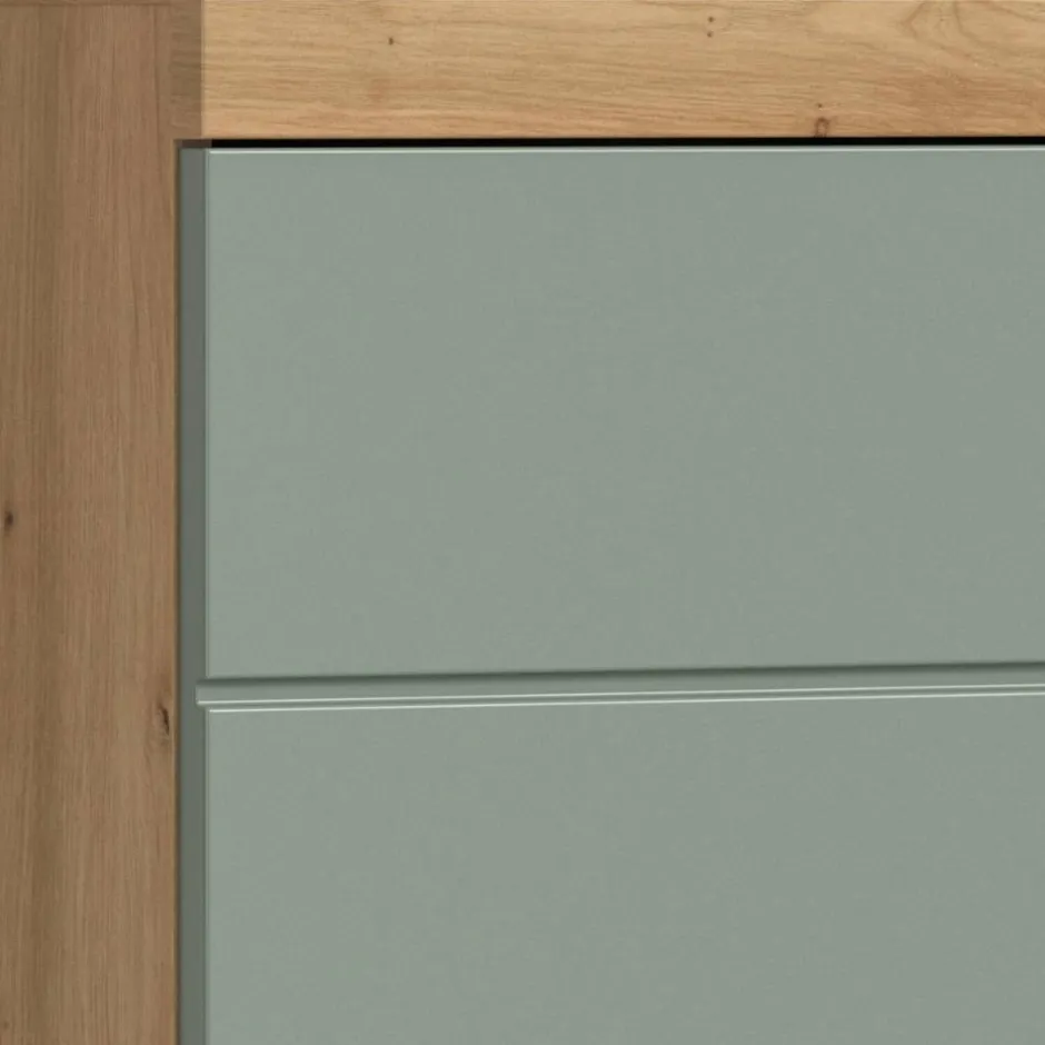 - Geräumiger Badhochschrank in Salbei und Wildeichefarben