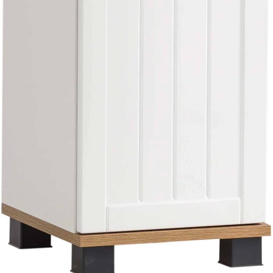 - Klasse Bad Hochschrank in Weiß und Eichefarben