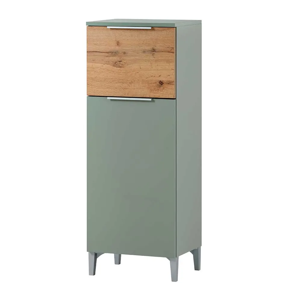 - Ansprechender Badezimmerschrank in Graugrün und Eichefarben