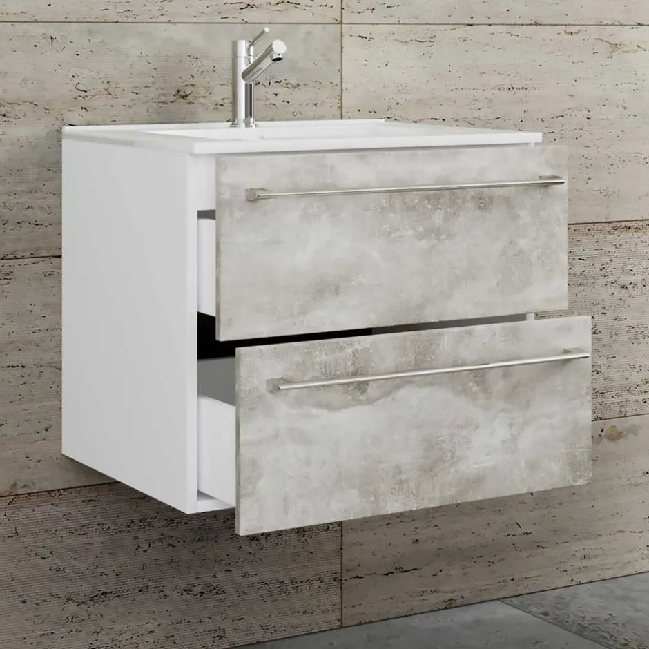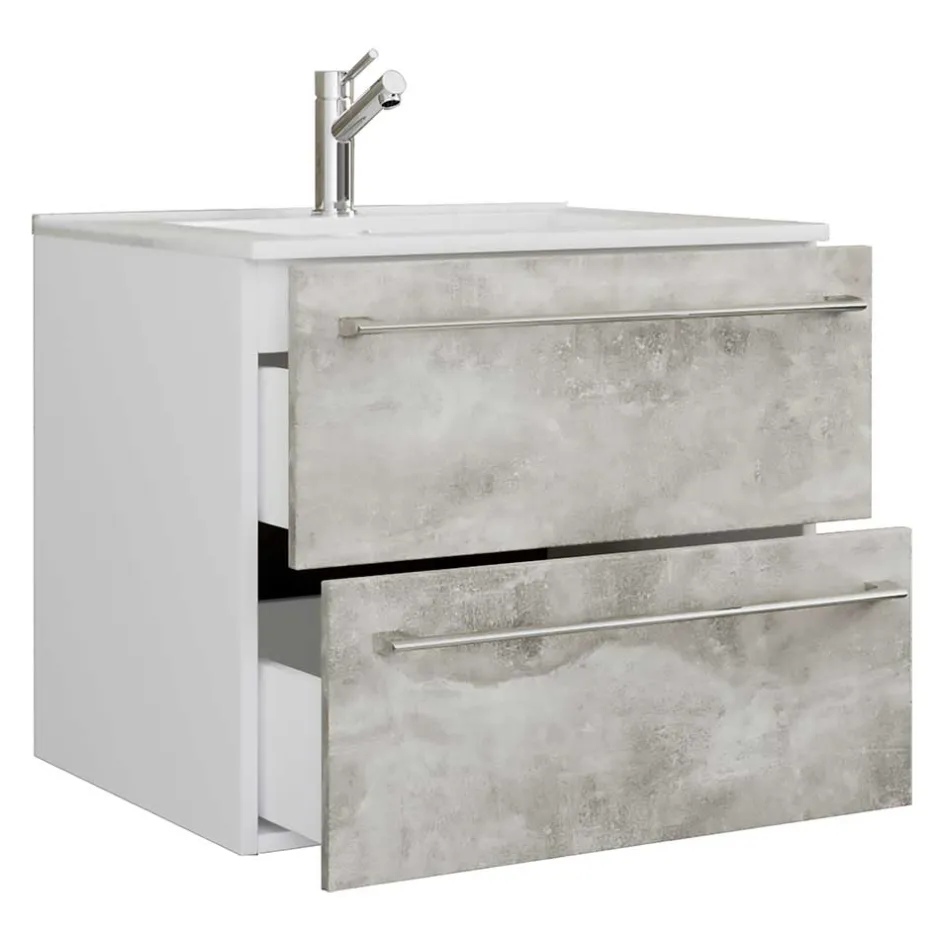 - Trendstarker Waschtisch in Weiß und Beton Optik Grau