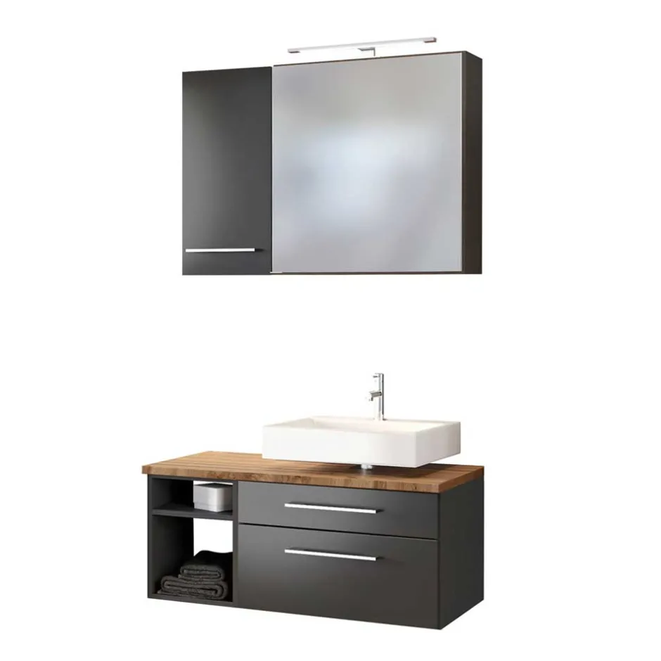 - Hochwertiges Badmöbel Set in dunkel Grau und Wildeichefarben
