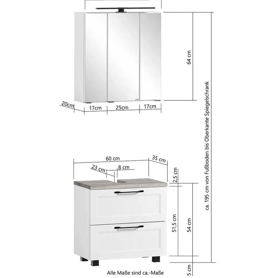 - Zweckmäßige Badmöbel in Weiß und Wildeichefarben