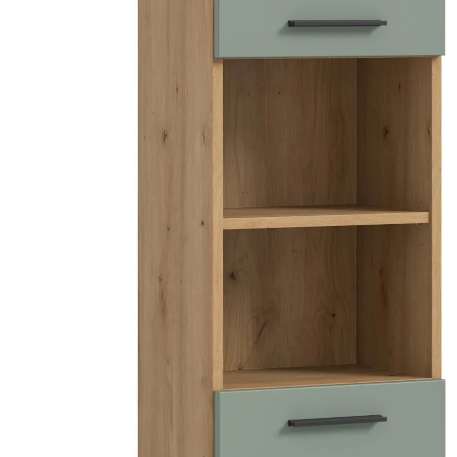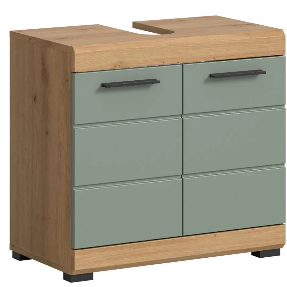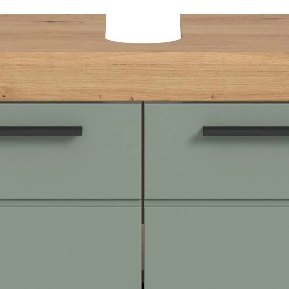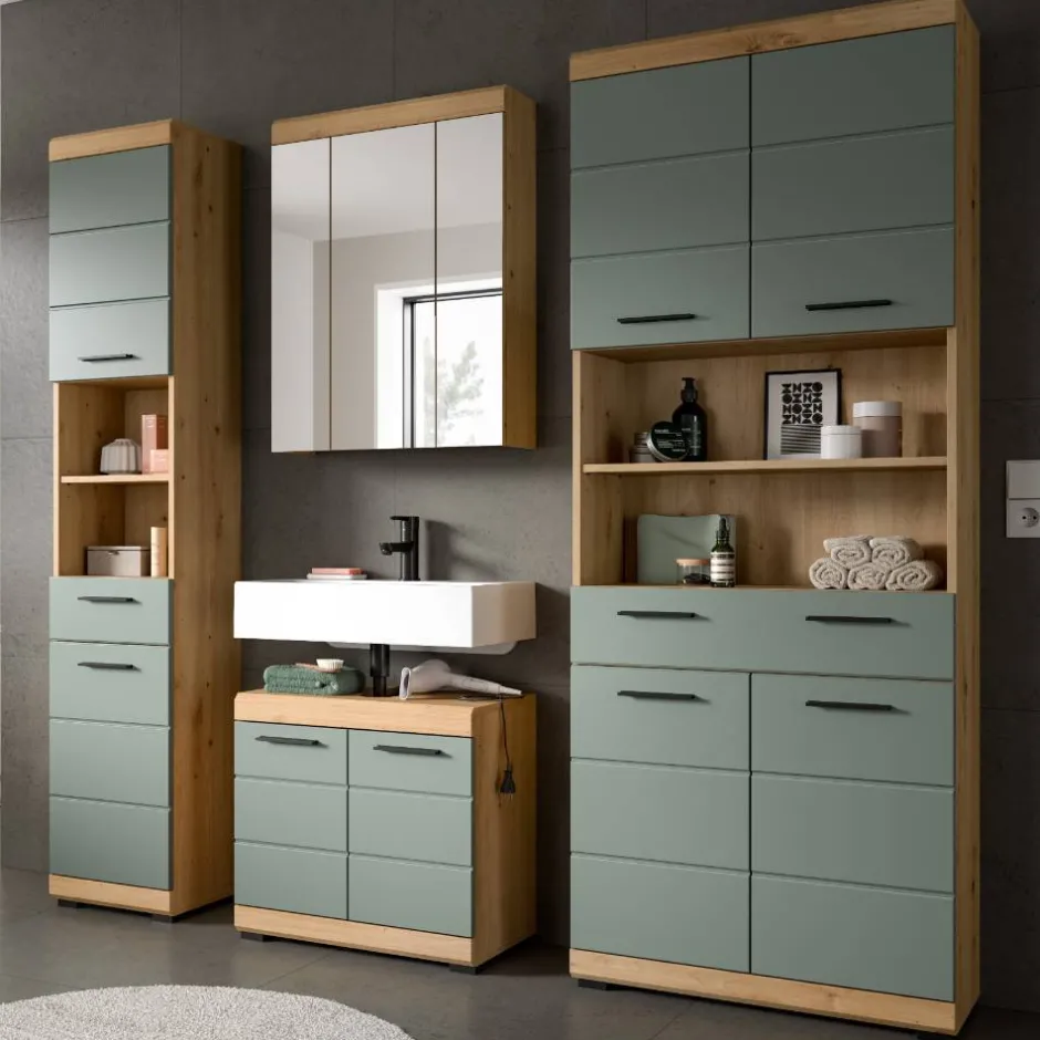 - Wohnliche Badmöbel in Salbei und Wildeichefarben