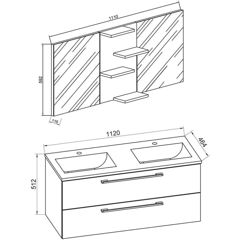 - Doppelwaschbecken aus Keramik, Maße: BxHxT: 110x17x46 cm, Innenmaße: BxT: je ca. 43×28,4 cm