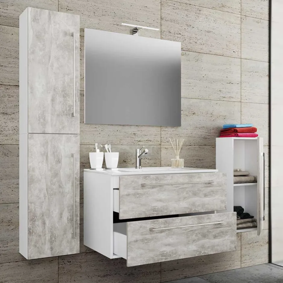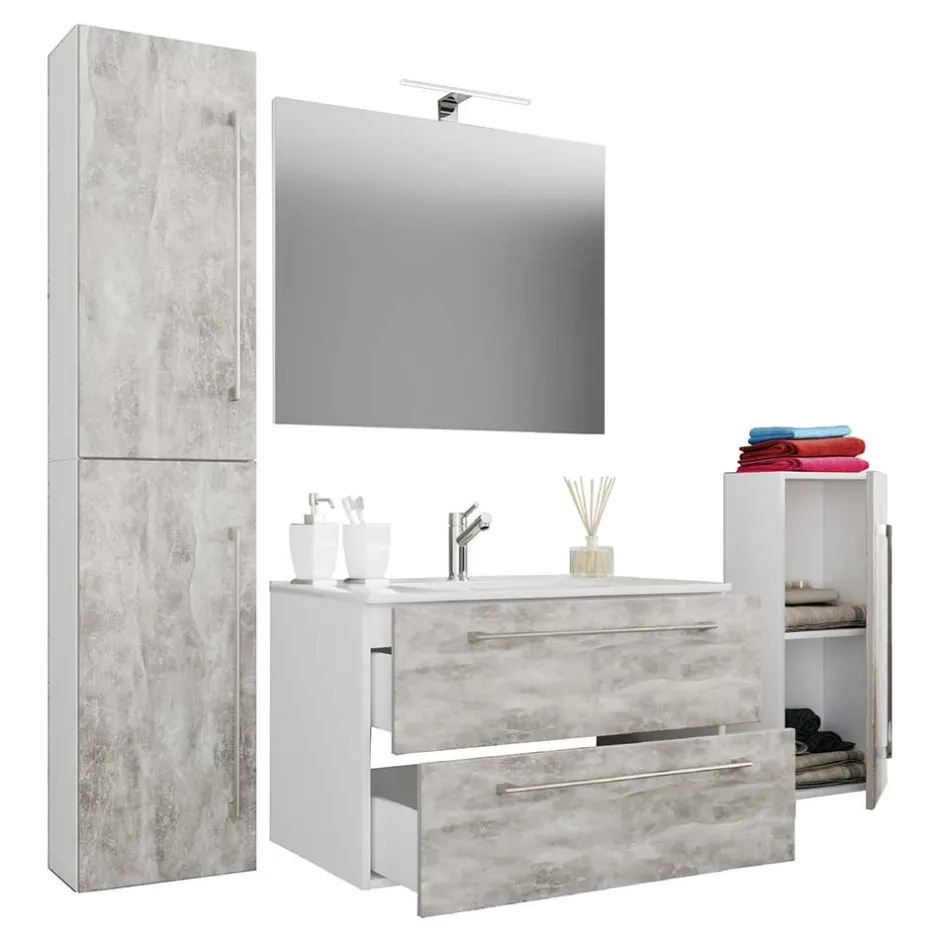 - Trendiges Badmöbel Set in Beton Grau und Weiß