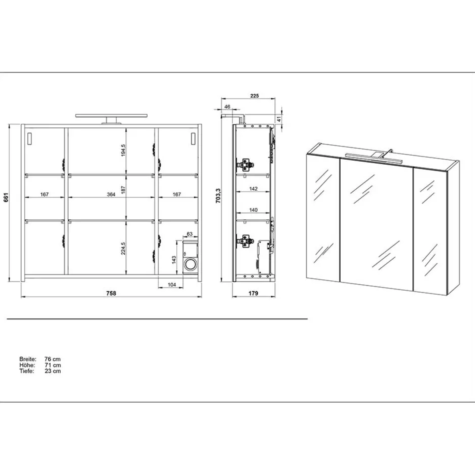 - Korpustiefe ohne Beleuchtung: ca. 17,9 cm