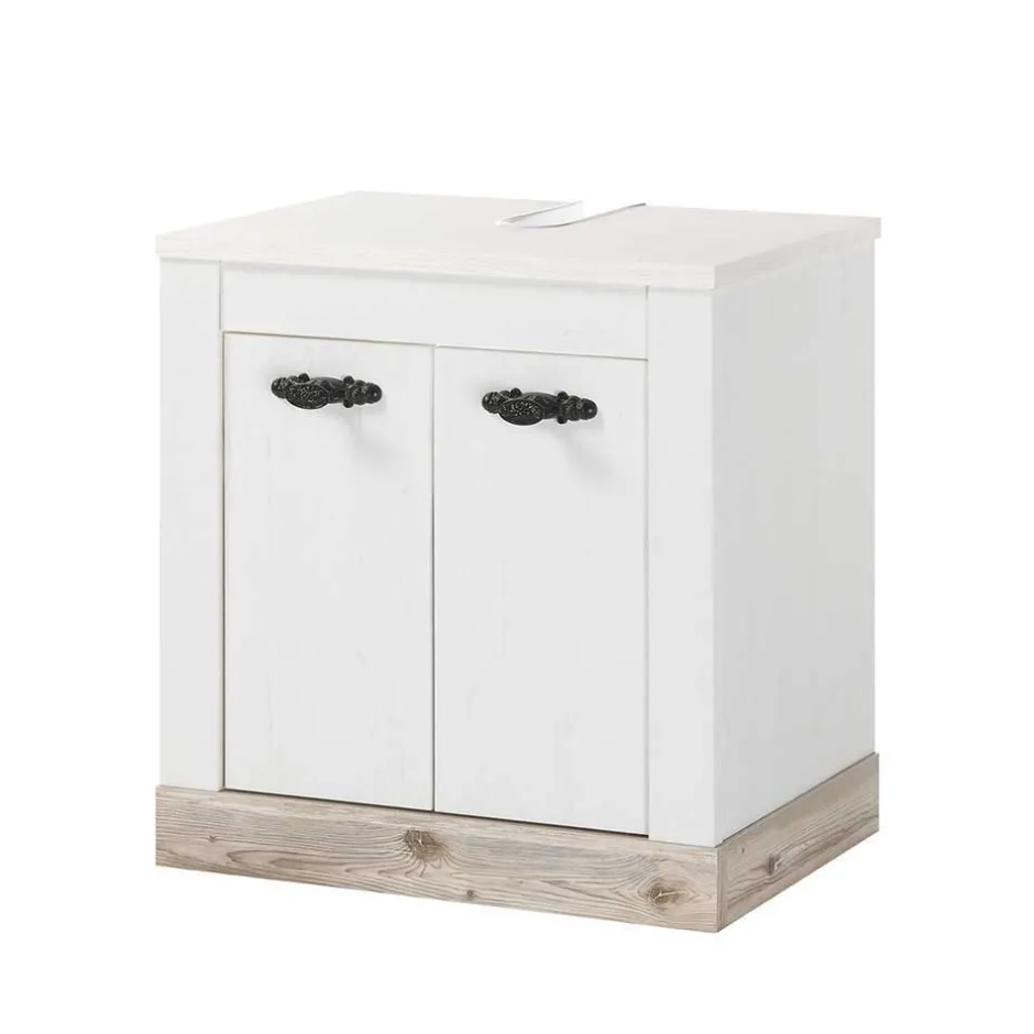 - Wohnliche Badkombination in Weiß und Pinienfarben
