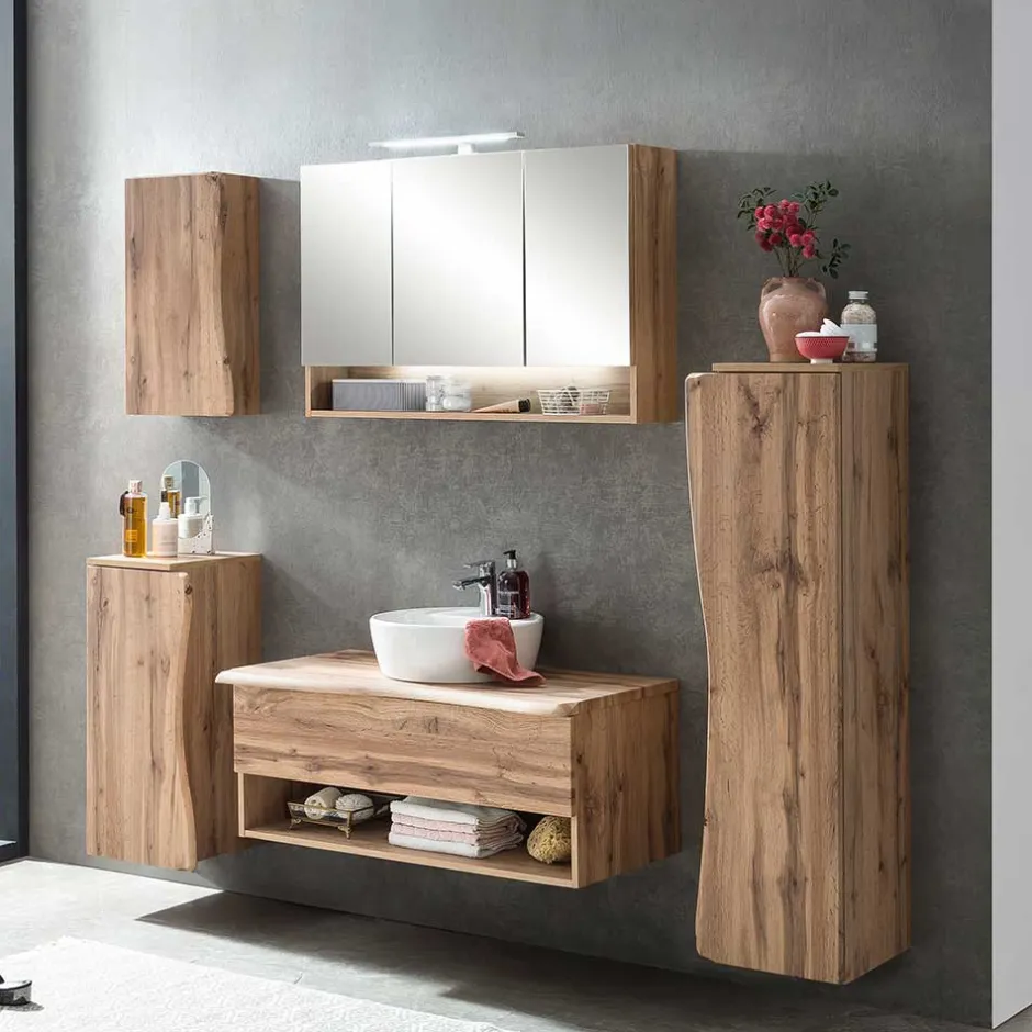 - Attraktive Badmöbel in Wildeichefarben mit Baumkantenoptik