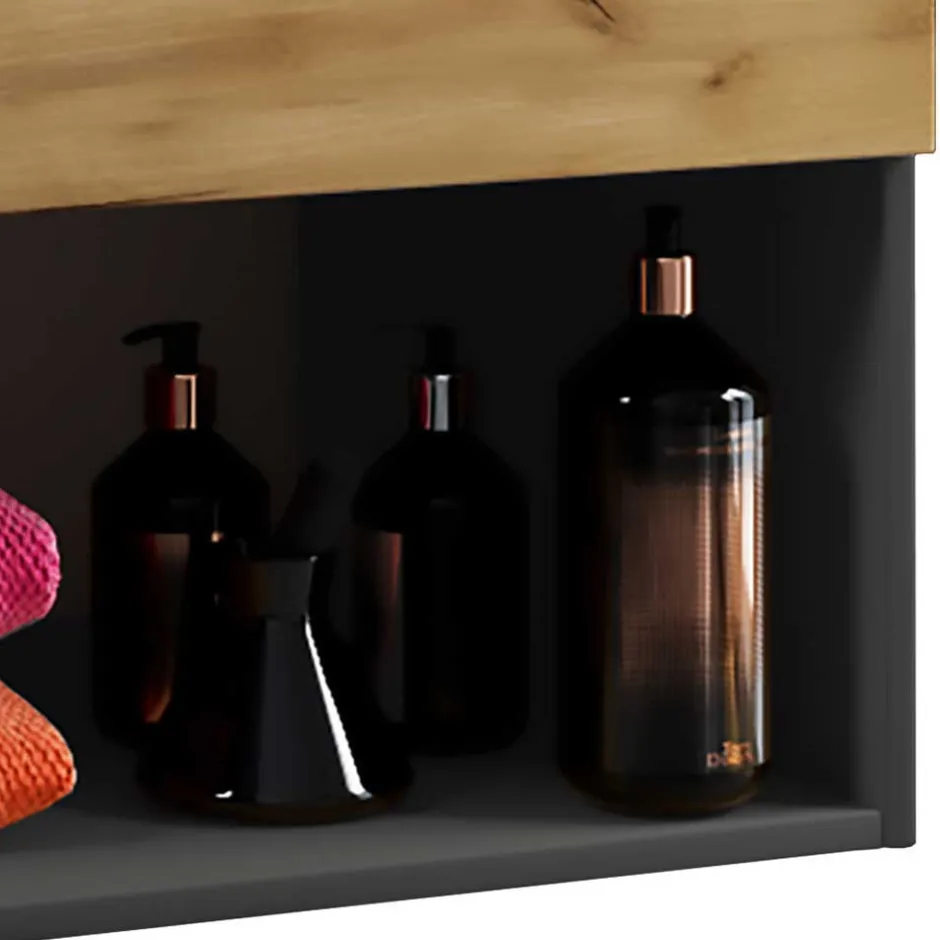 - Dekoratives Badmöbel Set in Anthrazit und Wildeiche Honigfarben