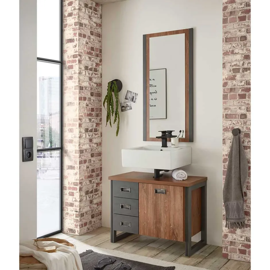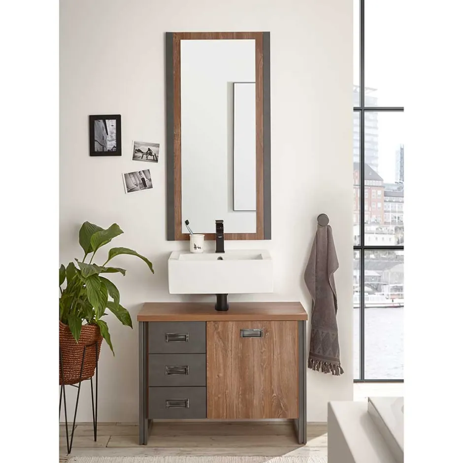 - Langlebige Bad Kombination in Eiche dunkel und Grau