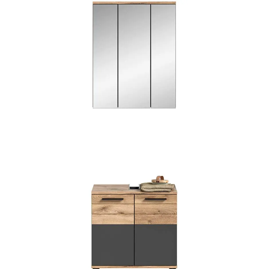 - Klasse Badmöbel Set in Wildeichefarben und Grau