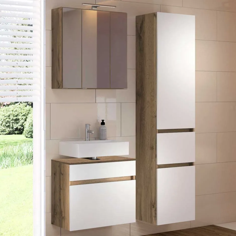 - Erstklassiges Badmöbel Set in Wildeichefarben und Weiß