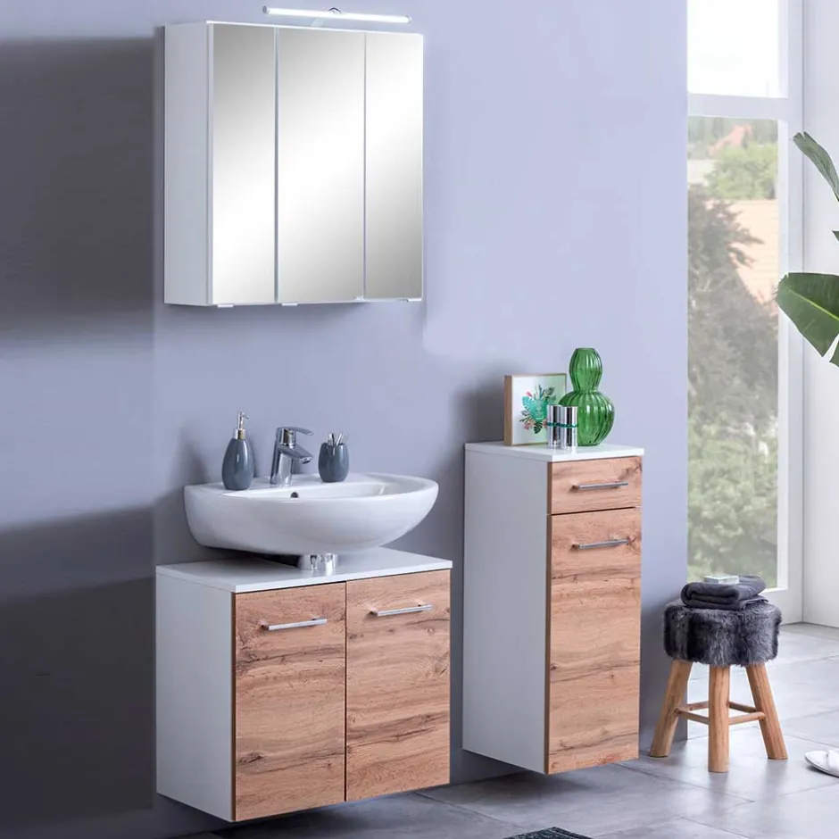 - Modernes Badezimmer Set in Weiß und Wildeichefarben