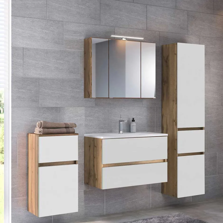 - Großartiges Badezimmer Set in Wildeichefarben und Weiß