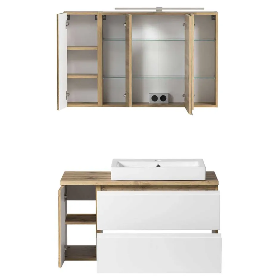- Aktuelle Badmöbel in Weiß und Wildeichefarben