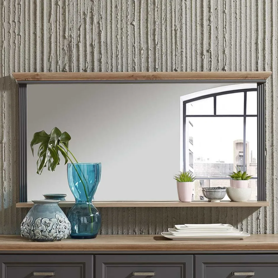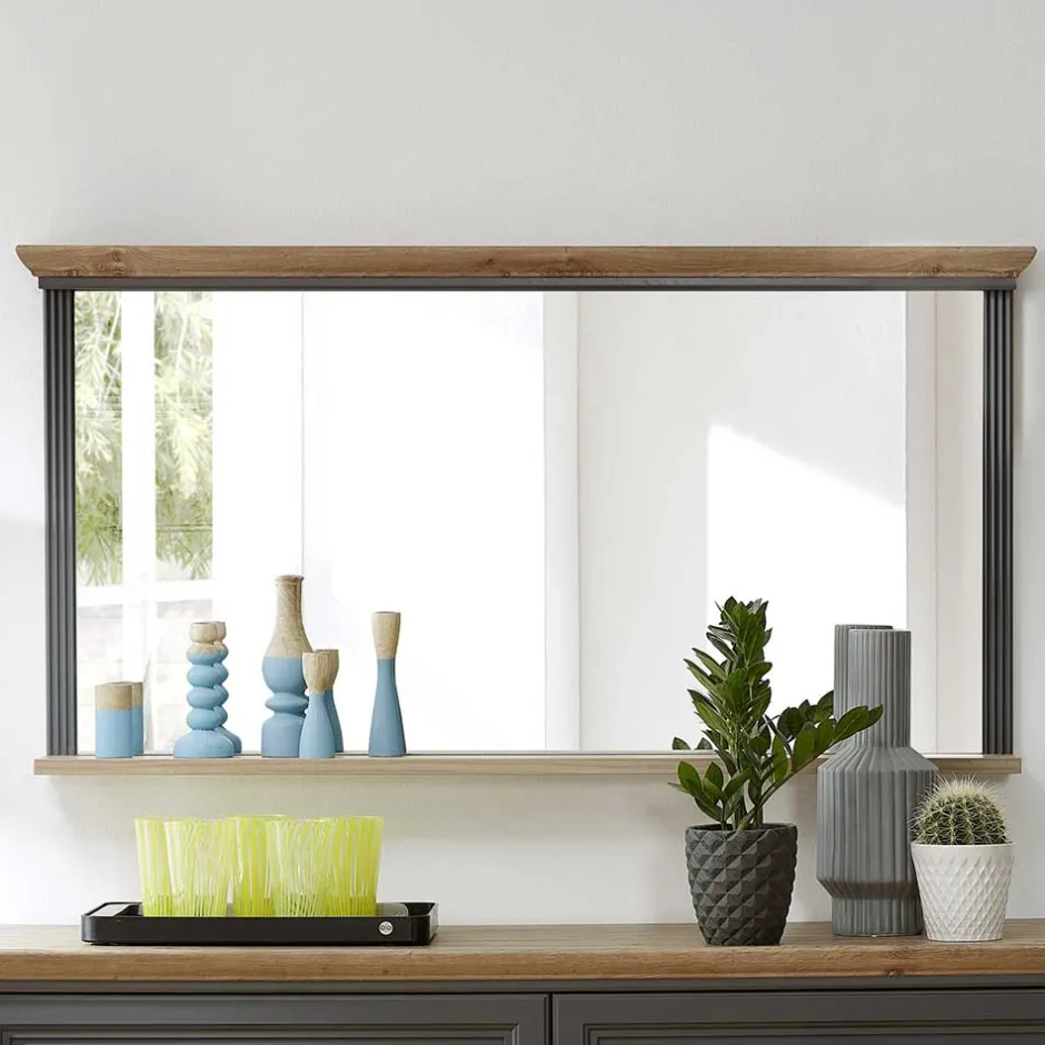 - Großartiger Wandspiegel in Dunkelgrau und Eichefarben
