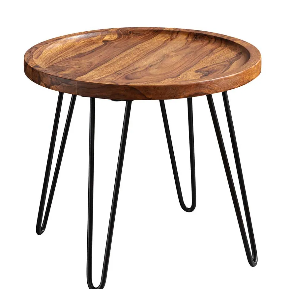 - Natürlicher Couchtisch in Sheeshamfarben und Schwarz