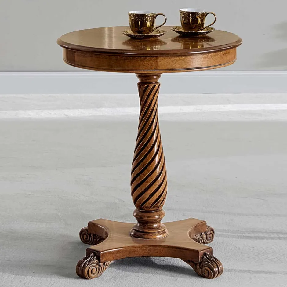 - Kunstvoll gestaltetes Säulengestell mit reichen Schnitzereien am Fuß