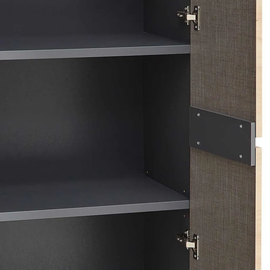 - Pflegeleicht folierte Oberflächen in Holzoptik Wildeiche und Dunkelgrau, Front mit tiefgezogenen Kanten