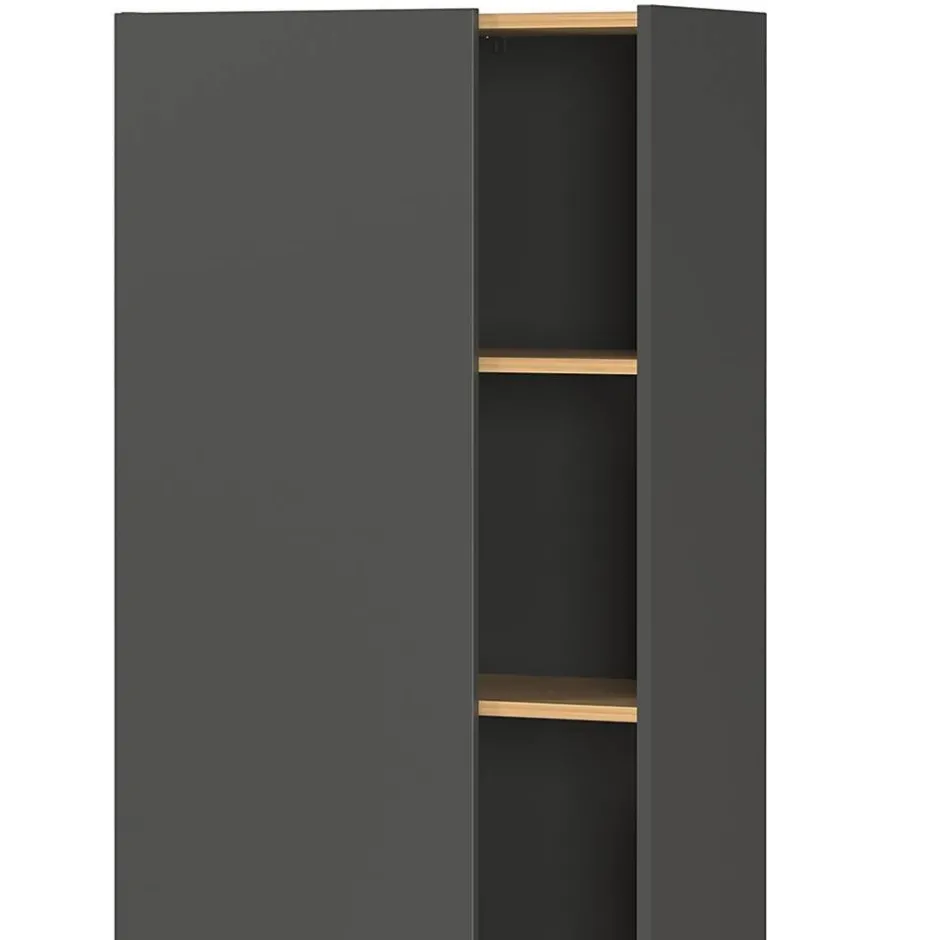 - Oberflächen pflegeleicht in Dunkelgrau und Holzoptik Wildeiche melaminbeschichtet