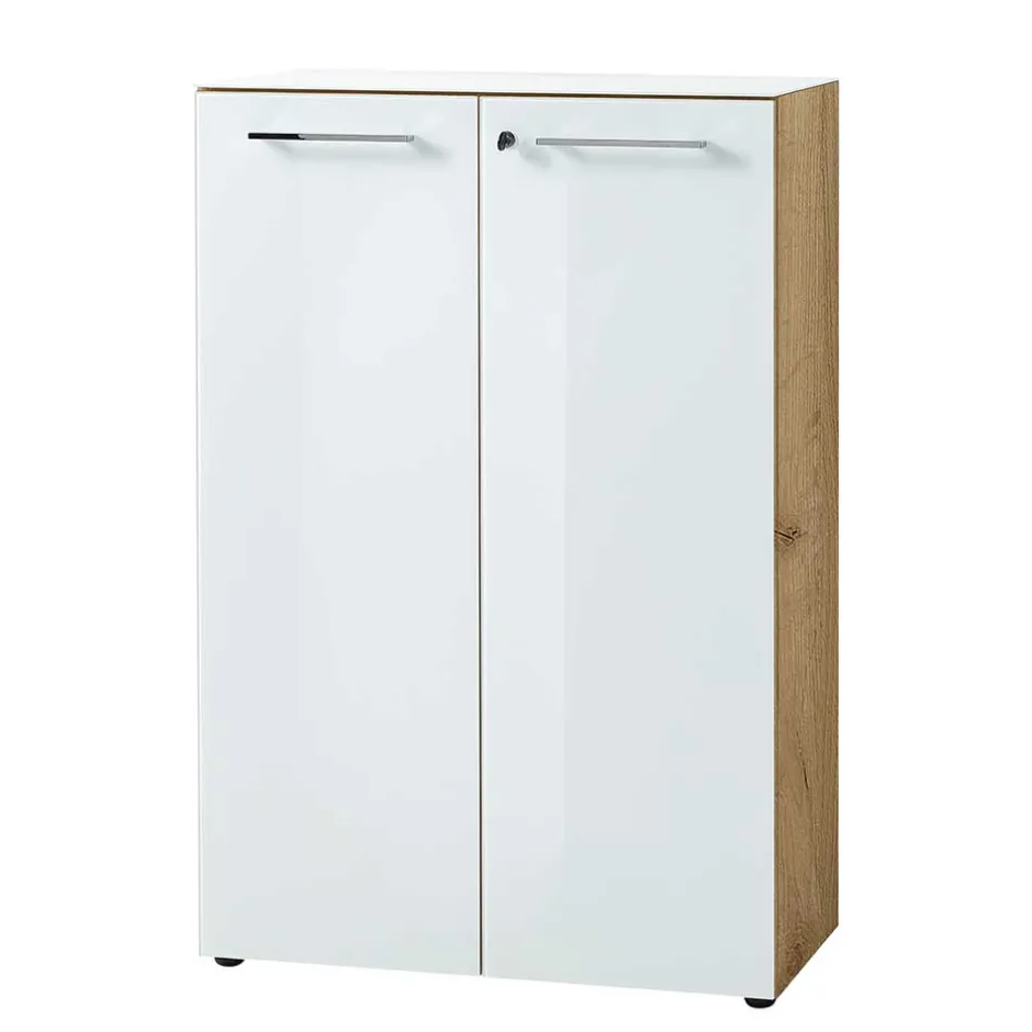 - Funktionale Büro Schrank Kombination in Weiß und Wildeichefarben