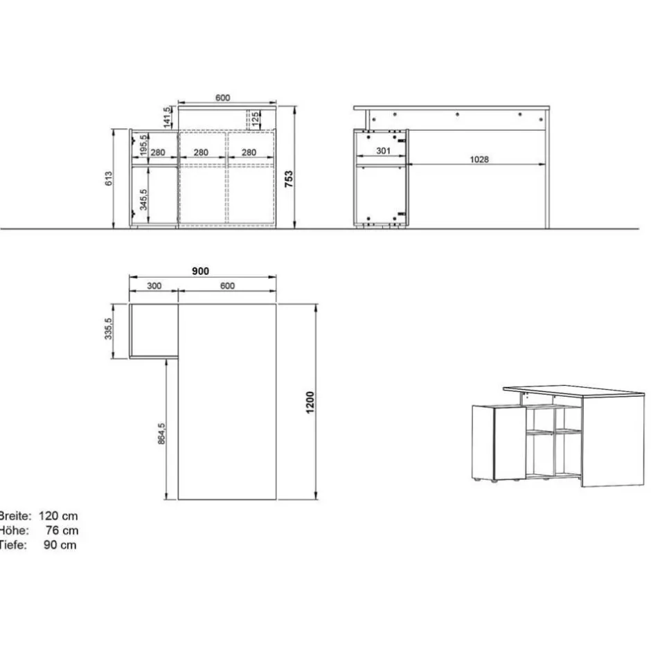 - Tischplatte bis max. 30 kg belastbar, Maße: BxT: 120×60 cm