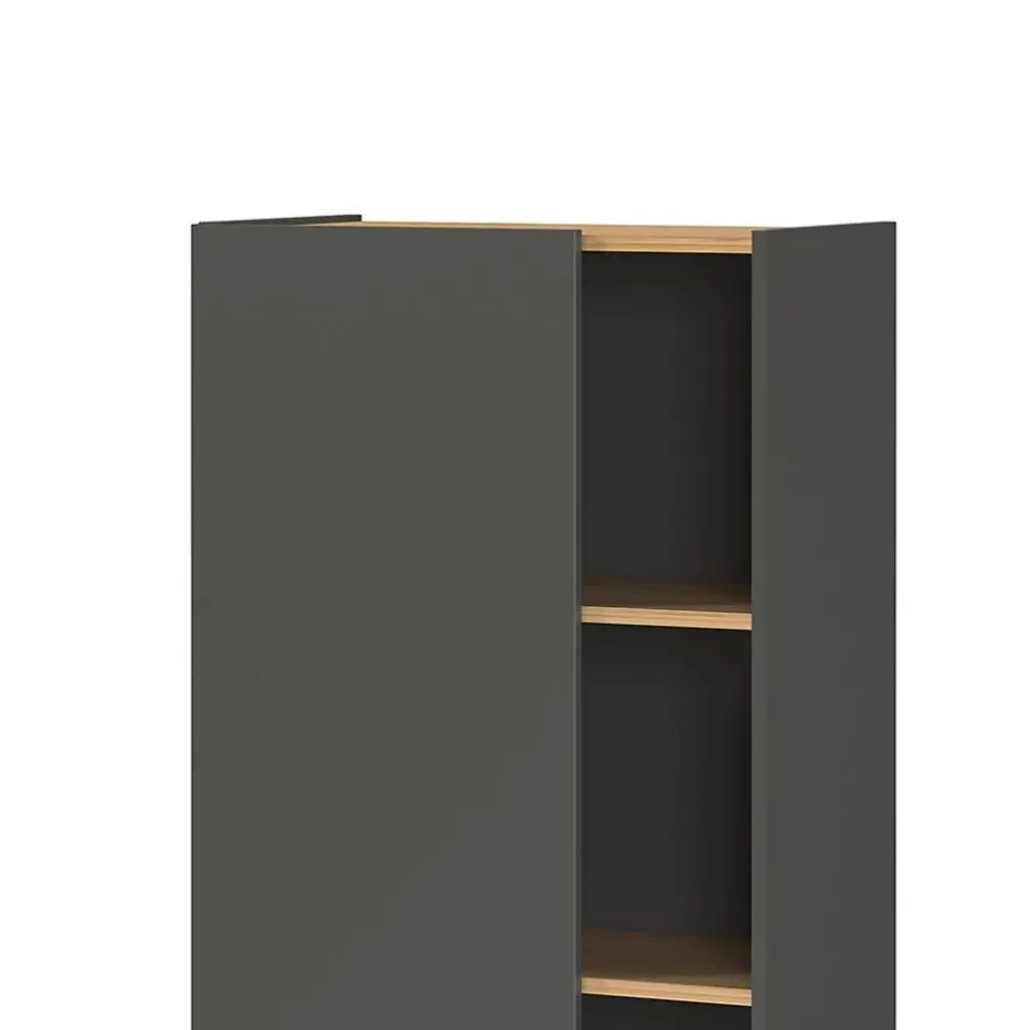 - Oberflächen strapazierfähig in Dunkelgrau und Holzoptik Wildeiche melaminbeschichtet