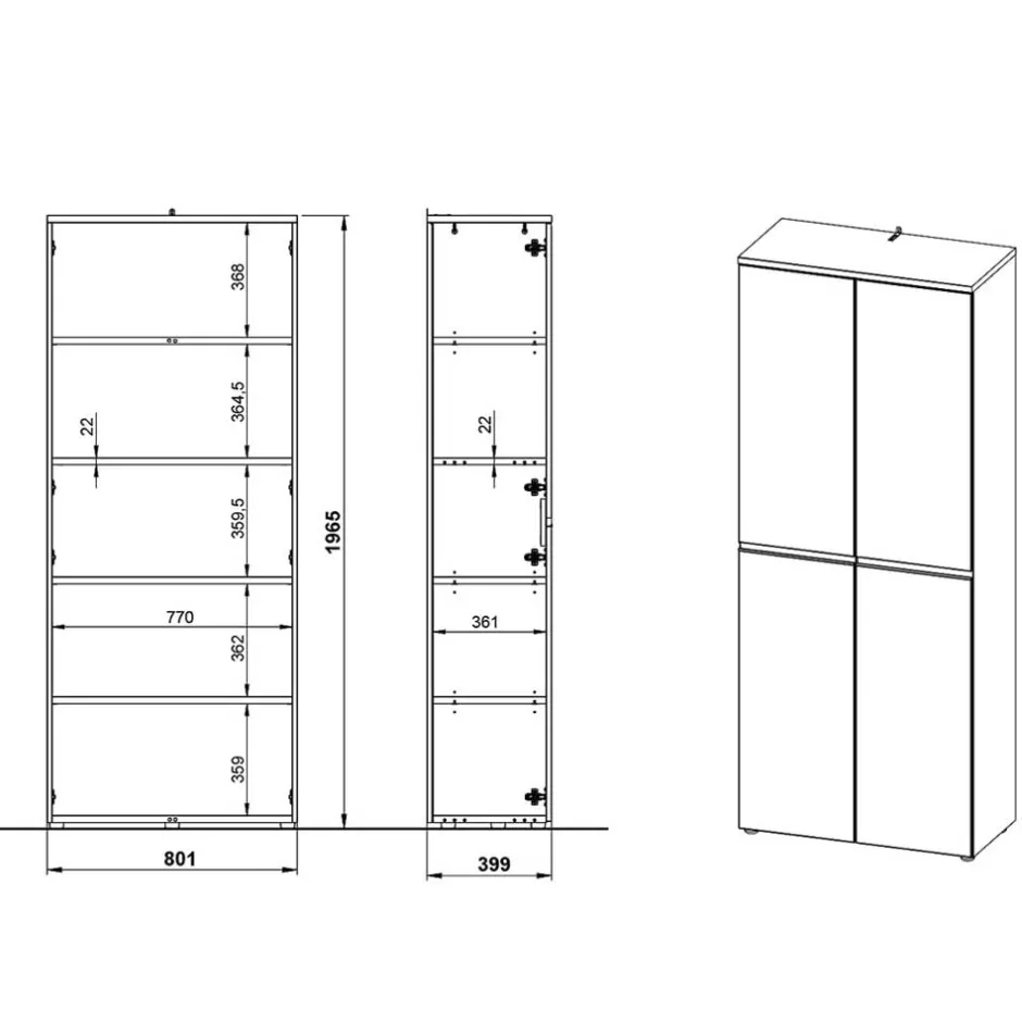 - Innen befinden sich drei verstellbare Einlegeböden und ein Konstruktionsboden