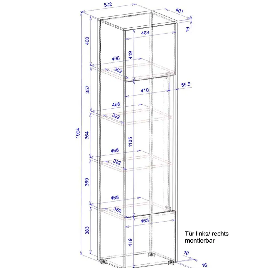 - 3 türig, Innenaufteilung: Mit Einlegeböden