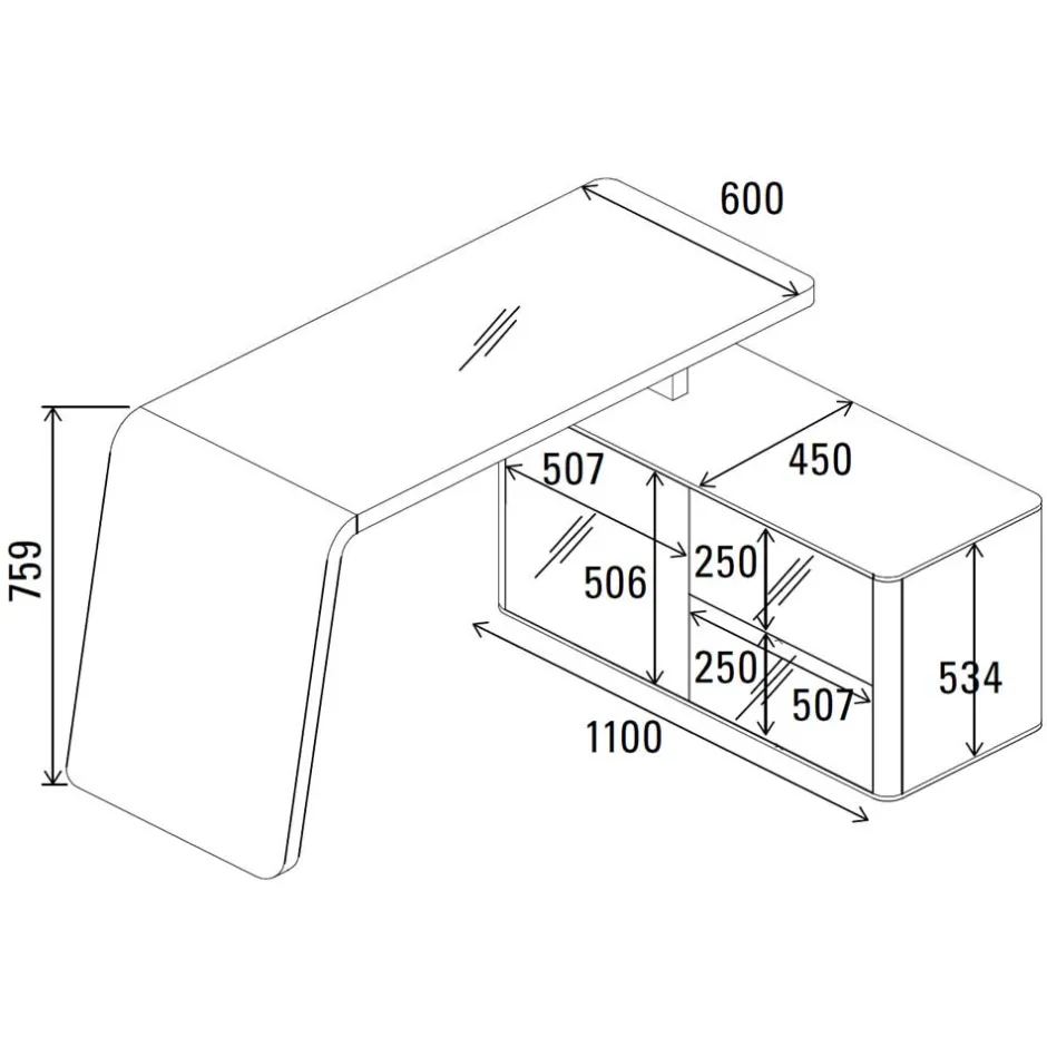 - Höhe zwischen Schreibtischplatte und Seitenregal: ca. 40 cm