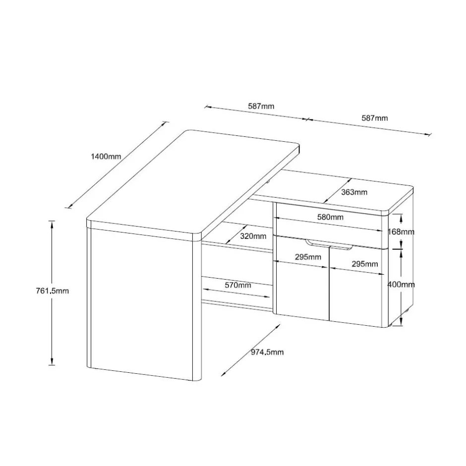 - Abstand zwischen Schreibtischplatte und Anstellregal: ca. 10,5 cm